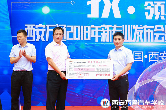 接下來(lái),便到了激動(dòng)人心的時(shí)刻。在主持人的邀請(qǐng)下,出席發(fā)布會(huì)的各位領(lǐng)導(dǎo)嘉賓在陣陣熱烈的掌聲中啟動(dòng)了新專業(yè)升級(jí)發(fā)布啟動(dòng)球,標(biāo)志著西安萬(wàn)通新能源汽車技術(shù)專業(yè)和汽車商務(wù)經(jīng)理專業(yè)成功升級(jí)正式發(fā)布。 同樣值得一喜的是,西安國(guó)利帝豪4S店與陽(yáng)光保險(xiǎn)集團(tuán)分別授予西安萬(wàn)通“新能源技術(shù)企業(yè)定制班”和“汽車商務(wù)經(jīng)理企業(yè)定制班”,校企合作,企業(yè)定制,又一波校企定制班面向廣大師生。而且,為了鼓勵(lì)校企定制班的學(xué)子能扎實(shí)掌握技能,順利通過(guò)企業(yè)考核,兩家企業(yè)都設(shè)置了企業(yè)助學(xué)金項(xiàng)目,分別向校企定制班捐贈(zèng)5萬(wàn)元的企業(yè)助學(xué)金。