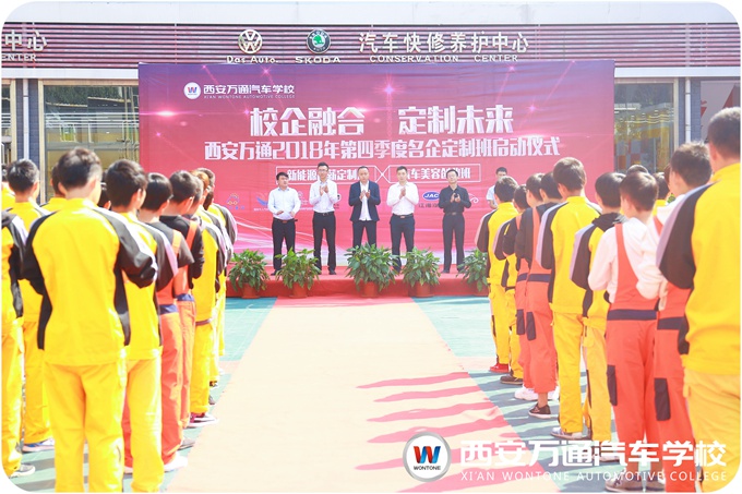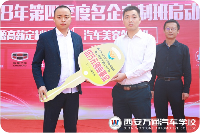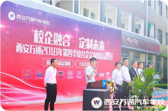 為了適應國家新能源技術發(fā)展戰(zhàn)略的宏偉目標,以及為汽車后市場培養(yǎng)更多的創(chuàng)業(yè)型人才,2018年9月21日,西安萬通汽車學校隆重舉行了西安萬通2018年第四季度名企定制班啟動儀式,標志著西安萬通“新能源高薪定制班”、“汽車美容創(chuàng)業(yè)班”兩個項目正式啟動。