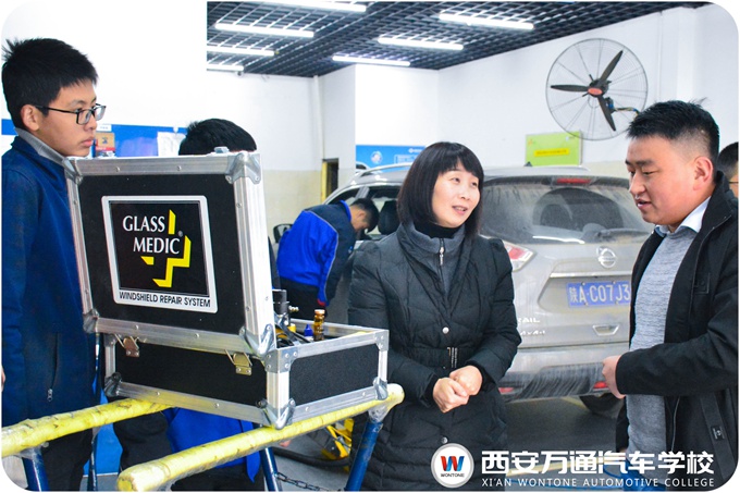 (西安萬通創就業指導老師在福耀玻璃貼膜企業了解玻璃修復工藝)