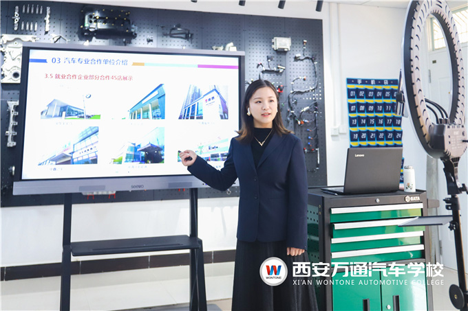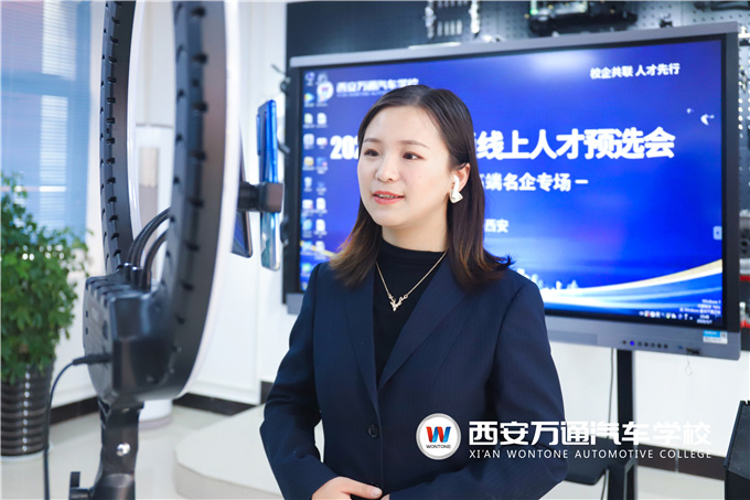 接著,鉑勒養車宋經理進入直播平臺詳細地介紹了企業發展前景、招聘崗位、福利待遇等求職者關心的內容。鉑勒養車宋經理表示:“在鉑勒養車與西安萬通汽車學校的常年合作中,西安萬通向鉑勒養車輸送了大批優秀技能人才,他們術業有專攻,貼合鉑勒養車各個崗位的專業需求,逐漸成為鉑勒養車發展壯大的中堅力量。這都得益于西安萬通隨市場發展而定的專業課程體系設置和完善的就業指導服務。鉑勒養車將不斷積極探索與西安萬通的校企合作范圍和深度,一起為培養‘大國工匠’持續助力。”
