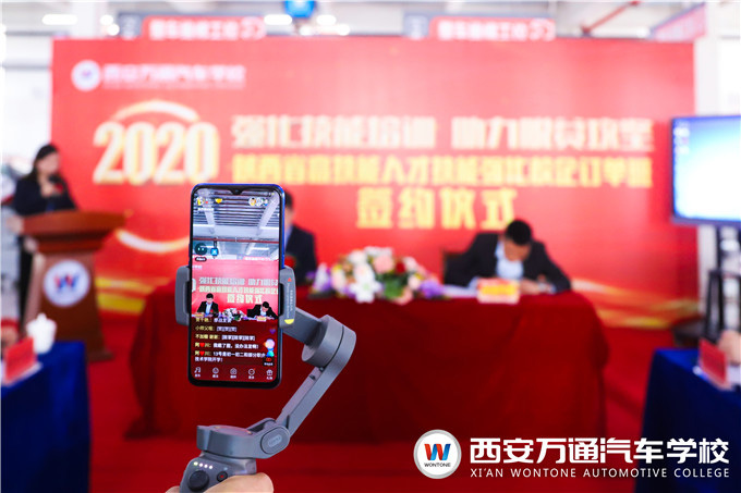 為促進產教融合,助力學子強化技能培訓,打贏脫貧攻堅戰,4月8日上午11時,西安萬通汽車學校舉辦了2020年陜西省高技能人才技能強化校企訂單班簽約儀式,簽約全程由快手平臺實時直播。