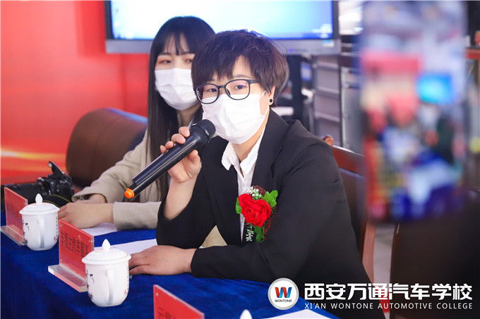 簽約儀式伊始,創就業中心彭主管向出席簽約儀式的企業嘉賓表示了熱烈歡迎,并表示此次校企合作簽約,推動了“春蕾行動”政策精準有效地實行,無論是對學校的辦學,還是對企業的發展都有著重要的意義,希望西安萬通與各大企業之間的合作能夠持續、健康、穩定的發展,共同助力于汽車人才的培養。