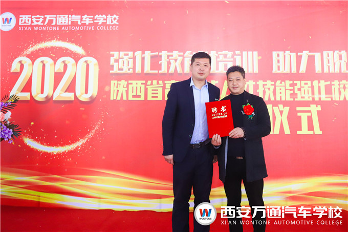 現場,校長助理爨助代表西安萬通汽車學校聘任靚車牛人、卡爾名車、百援精養三家企業總監為我校創就業幫扶指導專家,將市場人才需求與人才培養模式相結合,為學生創業、就業提供經驗指導和具體幫扶。