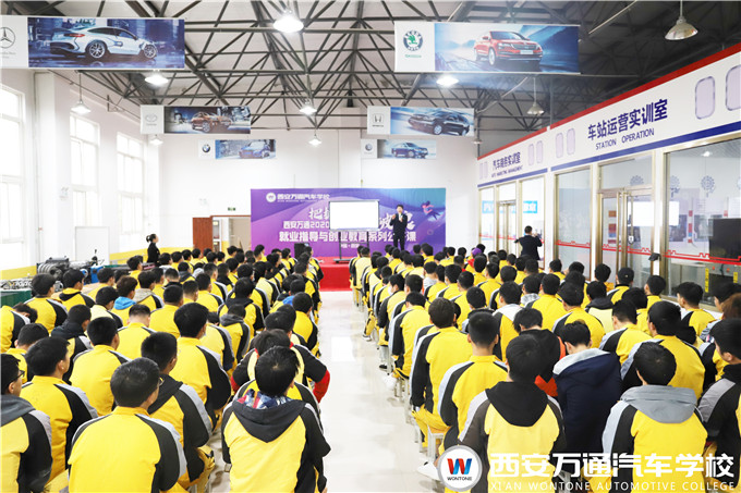 西安萬通汽車學校創就業指導中心彭主管也鼓勵同學們掌握技術的同時也要規劃好未來的發展方向,她分析了汽車服務行業快速發展的現狀,指出在汽車行業快速發展的背景下,同學們要把握好當下的機遇。
