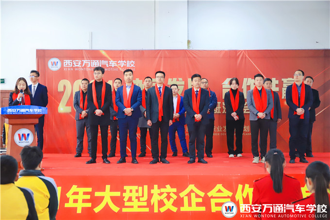 西安萬通汽車學校韓校長依次與數十家企業簽訂了2021校企訂單班戰略合作協議。這些企業將定期組織資深企業總監來我校實訓授課,以理論與實踐相結合的人才培養模式對西安萬通汽車學校的學生進行指導授課,擺脫傳統的師資教育模式,開辟全新的企業授課模式,讓學生快速掌握扎實的汽修技能,同時解決在校學生實習實踐問題。