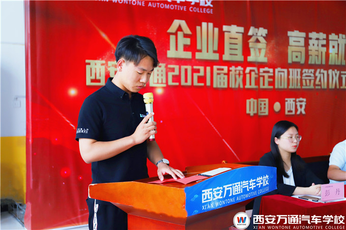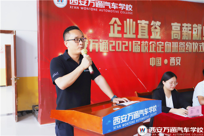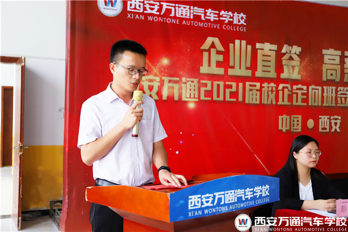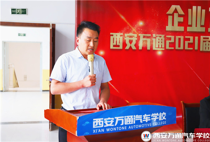 西安萬通鄭助在講話中強調(diào),西安萬通汽車學校注重每一個畢業(yè)生的未來發(fā)展,將不遺余力地為同學們創(chuàng)造良好的學習實訓條件,鍛煉好進入企業(yè)的所需各項必備技能,也希望同學們一定要珍惜時間,查缺補漏,踏實努力強化技能,提升自身職業(yè)素養(yǎng)。