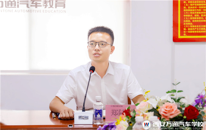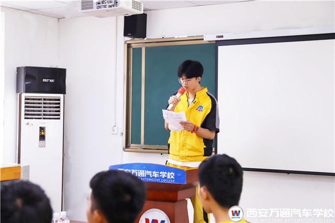 新生代表發言表示,同學們都是為了同一個理想來到西安萬通汽車學校學習技術,學校的任課老師專業技能扎實,班主任老師耐心負責,學校實訓設備完善先進,希望大家把握好學習時間,學好專業知識,在汽修行業闖出自己的天地。