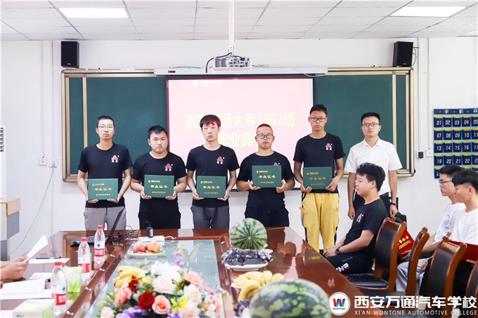 隨后教務(wù)處梁主任向優(yōu)秀畢業(yè)生頒發(fā)了榮譽(yù)證書,激勵(lì)他們更上一層樓。西安萬(wàn)通汽車學(xué)校校長(zhǎng)助理鄭助向?qū)W子們依次頒發(fā)了畢業(yè)證書,并發(fā)表了重要講話。