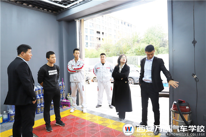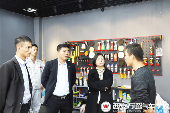 為鍛煉學生自主創業能力,培養學生系統掌握創業實戰技能,熟知創業經營管理等方面的知識,2020年10月20日,西安萬通汽車學校的教務處梁主管、創就業指導中心彭主管、美容班班主任張老師特攜有創業意向的新生學子來到萬通全國十佳創業示范店之一的車藝美汽車服務中心進行學習交流。車藝美汽車服務中心是西安萬通優秀畢業學子楊龍和武建永共同創辦的。