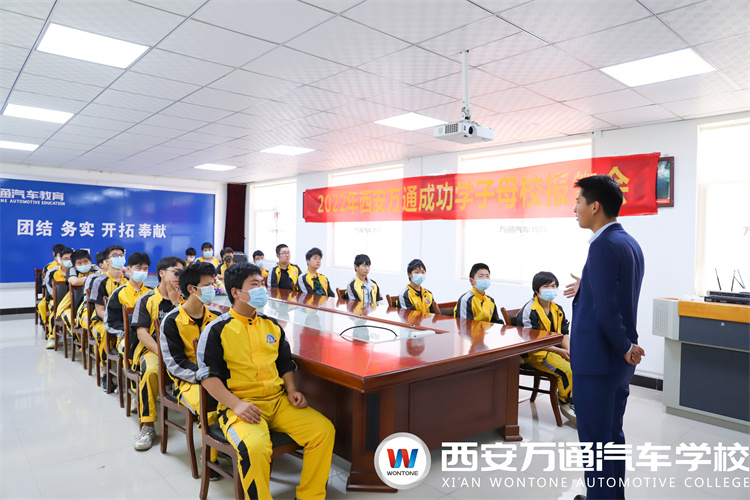 講述背后的故事,分享成功的經驗,唱響奮斗的青春之歌。為了樹立榜樣的力量,激勵更多在校學生發奮圖強,明確職業生涯目標,西安萬通汽車學校舉行了成功學子母校報告會暨招聘會活動。2022年5月4日下午,西安萬通汽車學校13級學子劉旺再回母校,向萬通學子的學弟們分享自己的汽修行業成功經驗和招聘。