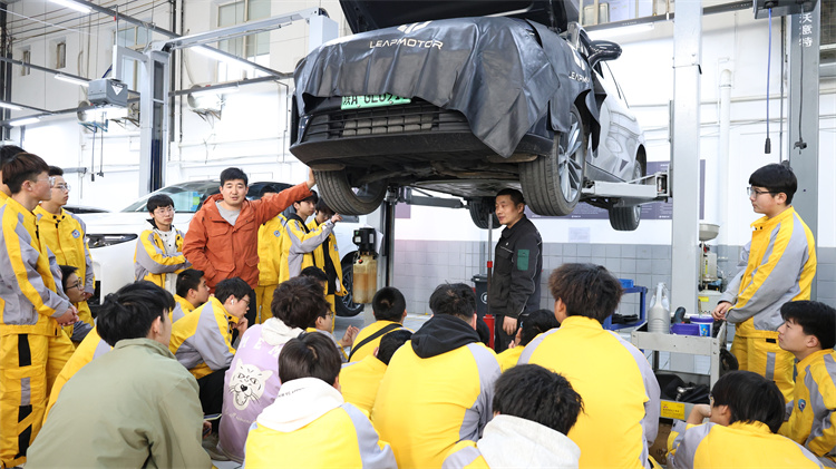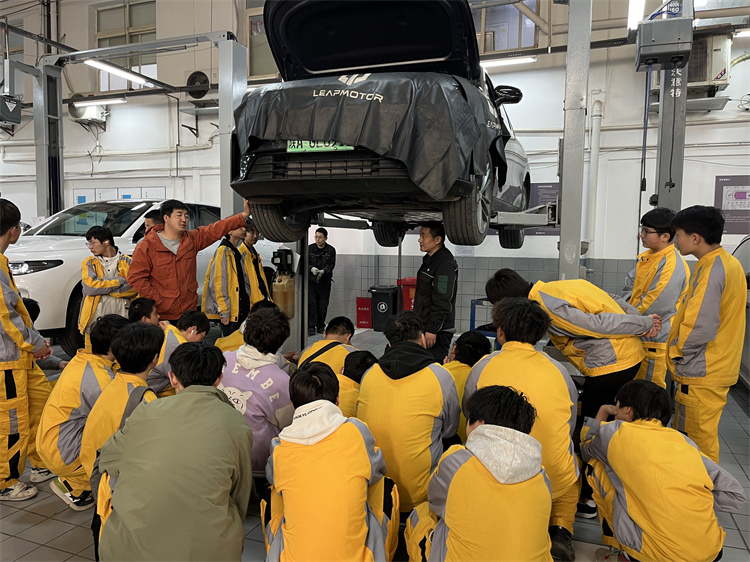 “原來4S店不僅是賣車,還涵蓋金融、保險、上牌、售后等全鏈條服務,這對我們的綜合能力提出了更高要求。”一名學生感慨道。售后車間里,技師們正在熟練地進行電池檢測、系統升級等作業,學生們認真觀摩,并結合在校所學的電控技術知識積極提問,零跑技術主管一一解答,現場互動氛圍熱烈。