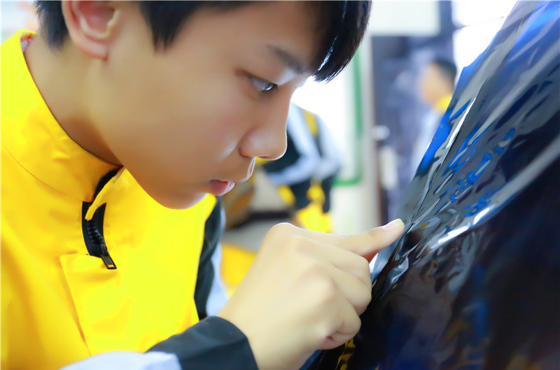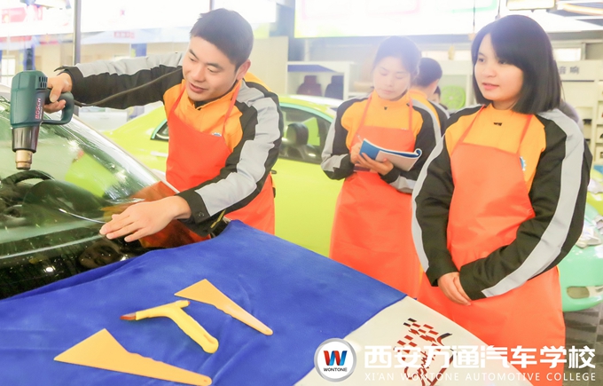 1、整張安裝,不能拼湊; 2、不能有氣泡、折痕(以雨刮有效使用范圍為準); 3、水必須刮干凈(從玻璃的左右兩側分別觀察,可以看的很清楚); 4、坐在駕駛位,透過前擋看車外的景物不存在模糊、色差現象; 5、查看前擋玻璃有沒有強烈的反光現象(外側); 6、膜材的邊緣是否粘貼完好,無起邊現象; 7、膜材的邊緣于玻璃的小黑點鏈接,檢查是否平滑,有無明顯的凹凸不平的感覺; 以上就是專業汽車美容服務的詳細步驟,了解了汽車美容服務項目的步驟你是否對想要了解其他汽車美容服務項目的相關知識。那么請咨詢029-85838966。學汽車美容選擇西安萬通汽車學校,專業的汽車美容設備,實訓授課,短期掌握技能,讓你成為汽車美容大師。