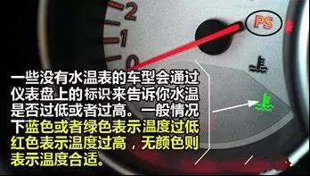 有些車輛沒有配置水溫表,直接用水溫報(bào)警燈來做提醒:亮綠色的燈,表示水溫低,亮紅色的燈表示水溫高,具體水溫多么低、多么高,也搞不清楚。廠家說你搞清楚也看不懂,你也分析不出來問題,你直接看顏色就是了。呵呵...
