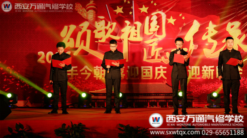 2016年9月27日晚7點,西安萬通汽修學校操場上燈光閃耀,歡聲滔天,全校學生整整齊齊的列坐在臺下的方陣之中,期待著西安萬通2016慶國慶•迎新生晚會的開始。