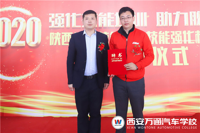 4月8日,在西安萬通汽車學校開展的陜西省高技能人才技能強化校企訂單班簽約儀式上,西安萬通校長助理爨助代表我校向靚車牛人汽車美容連鎖、陜西卡爾汽車維修服務(wù)連鎖有限公司、百援精養(yǎng)汽車連鎖服務(wù)有限公司三家企業(yè)總監(jiān)頒發(fā)了聘書,特聘他們?yōu)槲倚?chuàng)就業(yè)幫扶指導專家。