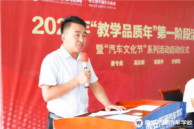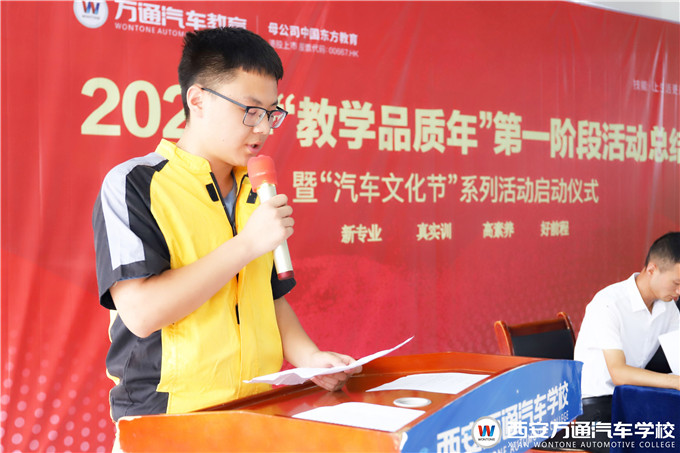 繼往開來,西安萬通汽車學校在7月15日特舉辦“教學品質(zhì)年”第一階段活動總結(jié)暨汽車文化節(jié)系列活動啟動儀式。西安萬通校長助理鄭助、教務(wù)處梁主任、學生處張主任等校領(lǐng)導(dǎo)及陜西義博優(yōu)創(chuàng)有限公司郝總參加了此次活動。