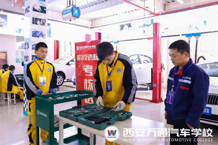 西安萬通汽車學校的階段達標考核周期短,頻率高,通過考核的學生可進入下一階段的學習,這種以考促學,以考促教的形式,既能監督老師的教學質量,也能幫助同學們更快、更牢固地掌握所學技能技術。