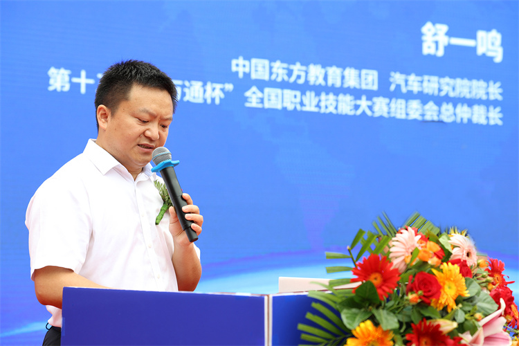 中國東方教育集團(tuán)汽車研究院院長、第十三屆“萬通杯”全國職業(yè)技能大賽仲裁長舒一鳴在致辭中表示,萬通汽車教育響應(yīng)政府號召,融聚全國行業(yè)職教力量,構(gòu)建行業(yè)技能人才選拔交流平臺,以世賽、國賽標(biāo)準(zhǔn)結(jié)合萬通教育教學(xué)特色,以賽促學(xué),為莘莘學(xué)子提供新時代技能競技舞臺,展示萬通汽車教育院校師生風(fēng)采。希望各參賽選手以良好的心理素質(zhì)和精神風(fēng)貌,賽出風(fēng)格,賽出水平。