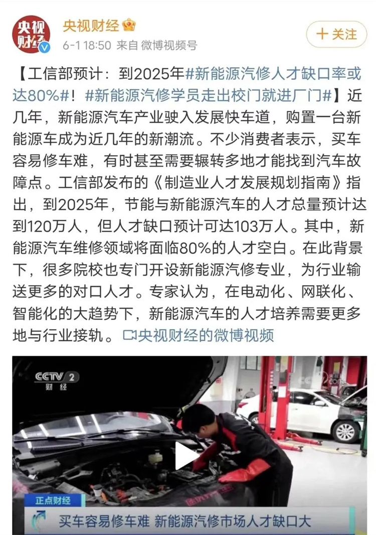 工信部預(yù)計(jì):到2025年#新能源汽修人才缺口率或達(dá)80%#!#新能源汽修人才緊缺#