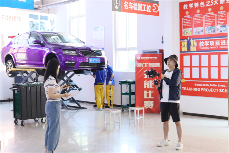 此次的媒體探校中,我校李主管和記者一起一一參觀并詳細介紹了我校的整車實訓中心,在這里記者們看到了:德、中、美、英等多款品牌主流車型作為學生的實訓車輛,為媒體記者揭秘了西安萬通學生技術扎實的奧秘所在。
