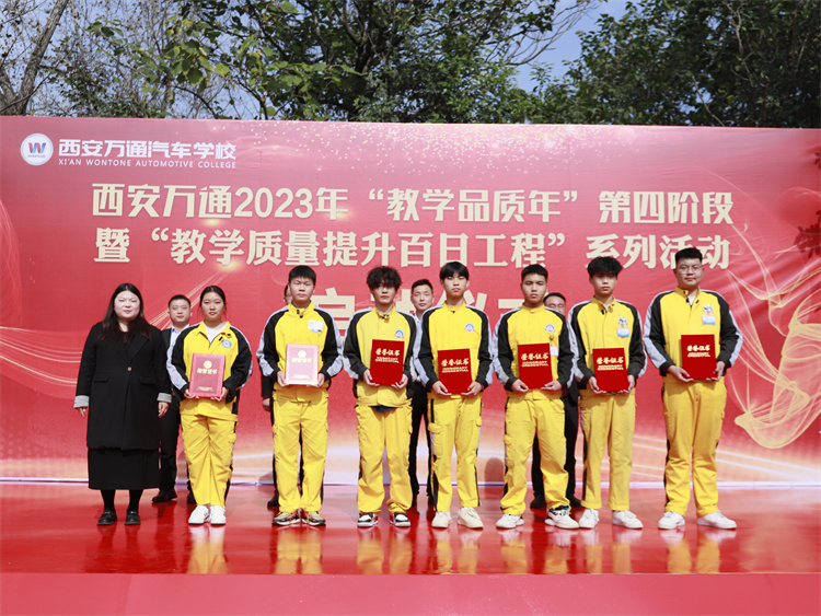 教務處主管在此次活現場宣讀教學質量品質年第三階段優秀名單,現場頒發了:“優秀學生會社團優秀成員”、“學生社團優秀干部獎”、“萬通杯第十三屆全國汽車技能大賽技術能手”、“西安市高技能人才大賽中優秀選手”等4個獎項。