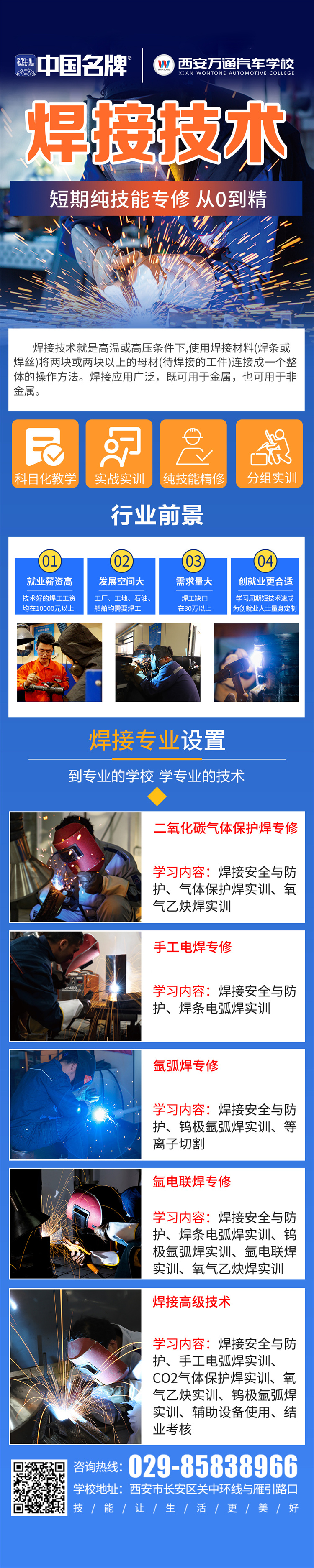 西安萬通學校設有獨立焊接實訓基地,配備獨立工位,一人一機,耗材不限。全程實訓,名師指導!