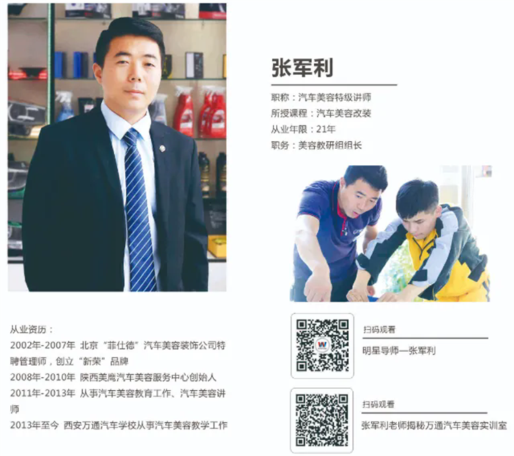 小到汽車打蠟貼膜,大到加裝汽車的影音系統,甚至改裝汽車的機械設備,有關汽車美容的服務可謂是包羅萬象。從而汽車美容行業的美容技師常年供不應求,全方位的復合型汽車美容人才更是稀缺。 想要掌握過硬的汽車美容技術嗎?關鍵在于選一個好學校!西安萬通汽車學校開設汽車美容快修店長班(4個月)、汽車美容改裝技師(2個月)、汽車美容技師(1個月)、汽車裝潢改裝技師(1個月)等專業,滿足短期學技術的同學快速掌握,實現創業夢想。