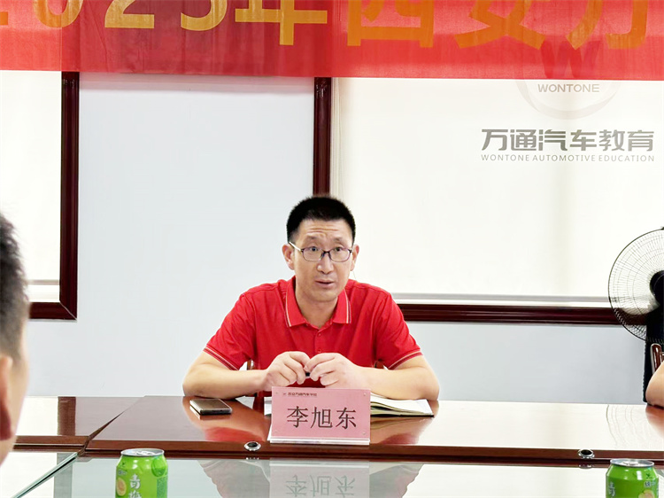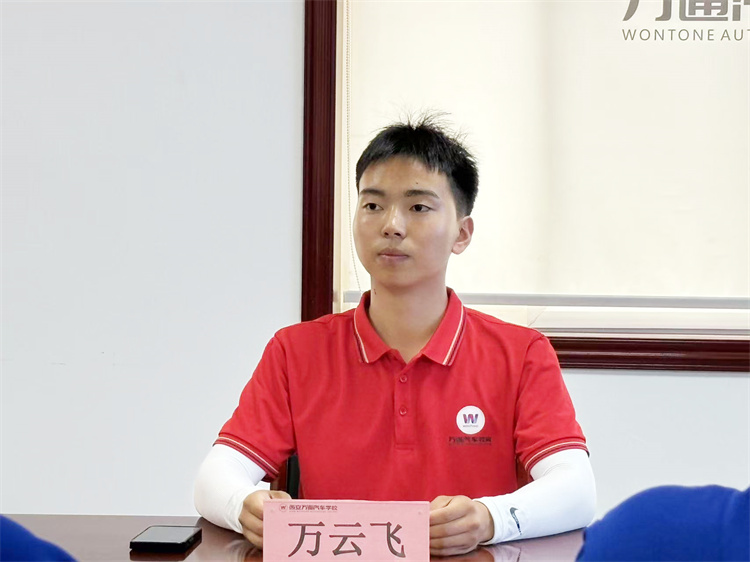 會議伊始,全體師生起立,以熱烈的掌聲歡迎校領導入場。萬云飛主管代表學校向新生致以誠摯的歡迎:“從今天起,你們將成為西安萬通的主人,未來汽修行業的棟梁!”簡短的開場白點燃了現場的熱情,也標志著新生們正式融入萬通大家庭。