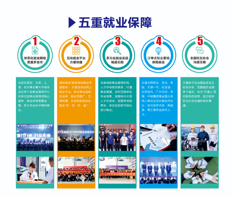 03 就業前景 普通大學學理論:普通學校不負責就業,隨著大學畢業生逐年增多,2025年大學畢業生人數達到1222萬,創歷史新高,就業形勢日漸嚴峻,高學歷不再是優勢。 職業學校學技術:在西安萬通,學校與眾多企業合作,開設校企合作專業,校企共同培養企業需要的人才,企業定期攜崗進校招聘,畢業就能入職企業。