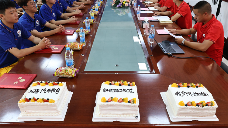儀式收官:甜蜜共享,定格美好 在溫馨的氛圍中,校長與班干部共同切開開班典禮蛋糕,象征班級團結與甜蜜未來。全體師生移步合影區,記錄下這一珍貴時刻。校領導離席前,再次與直播間家長揮手致意,感謝他們的全程參與。 新能源2502班的開班典禮不僅是一次儀式,更是一次家校共育的生動實踐。通過線下活動與線上直播的結合,學校展現了透明化管理的決心,也讓家長更加放心。未來,西安萬通汽車學校將繼續以學生為中心,攜手家長,為培養高素質技能人才而不懈努力!